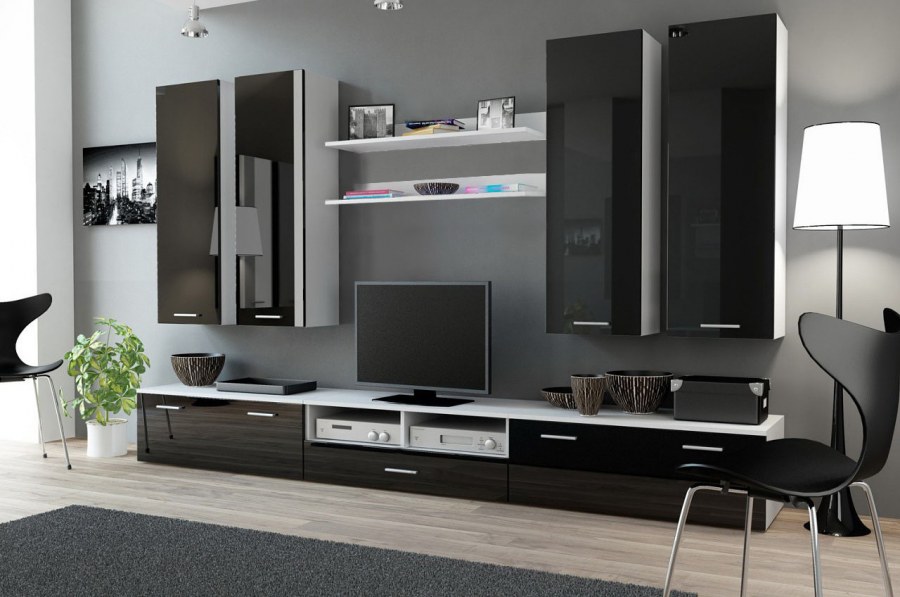 Дизайн стенки для гостиной в современном стиле (73 фото)