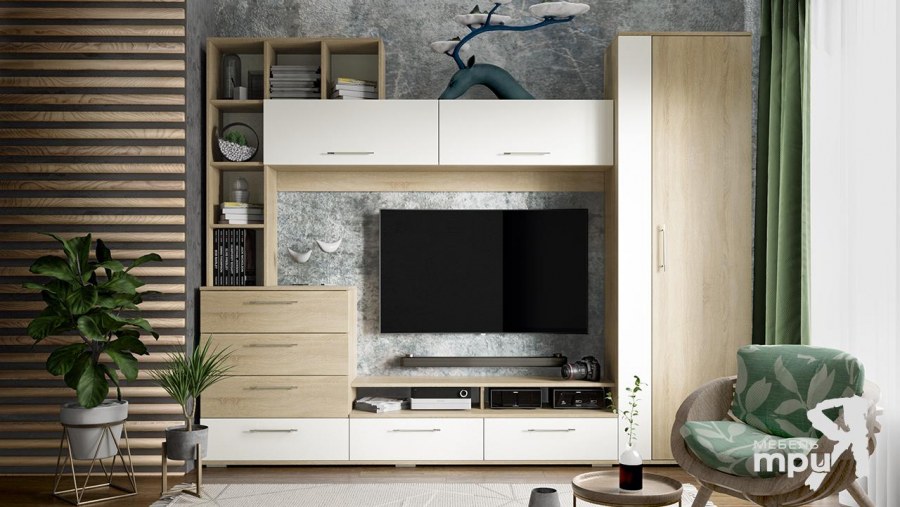 Стенка «Ненси» (дуб сонома/белый ясень)