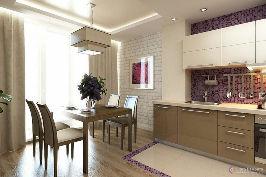 Прямоугольная кухня гостиная 17 кв