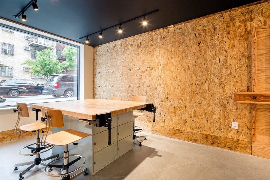 Крашеный ОСБ также отлично подходит для зонирования помещений. В открытых пространствах, таких как студии, окрашенные плиты можно использовать для выделения рабочих зон или уголков для отдыха. Они создают визуальные акценты, при этом оставаясь функциональными и долговечными. Кроме того, материал можно комбинировать с другими материалами, например, с кирпичной кладкой или деревянной отделкой, металлом или текстилем что добавляет интерьеру слоистости и глубины.
