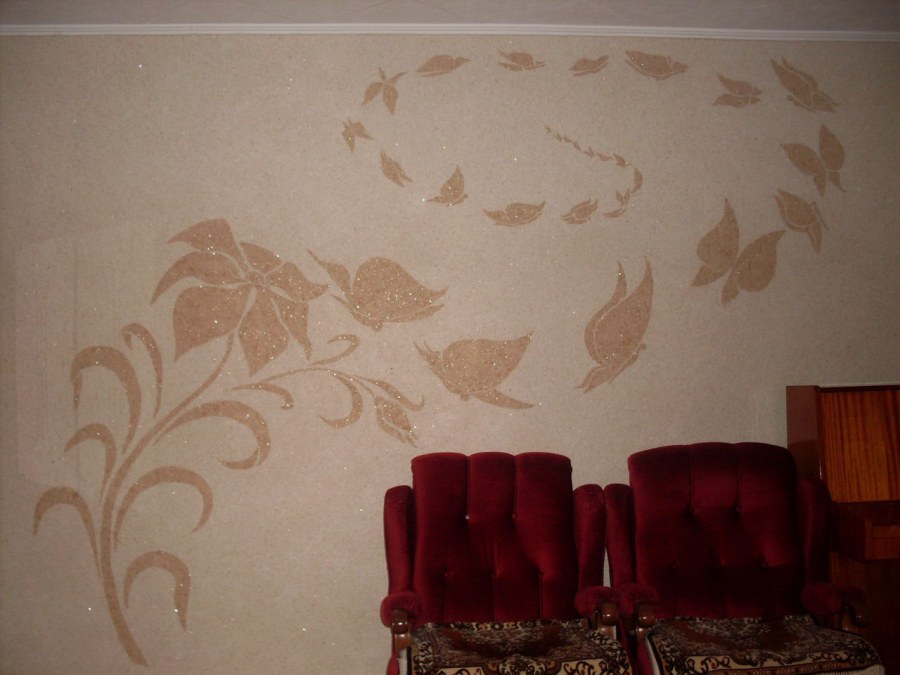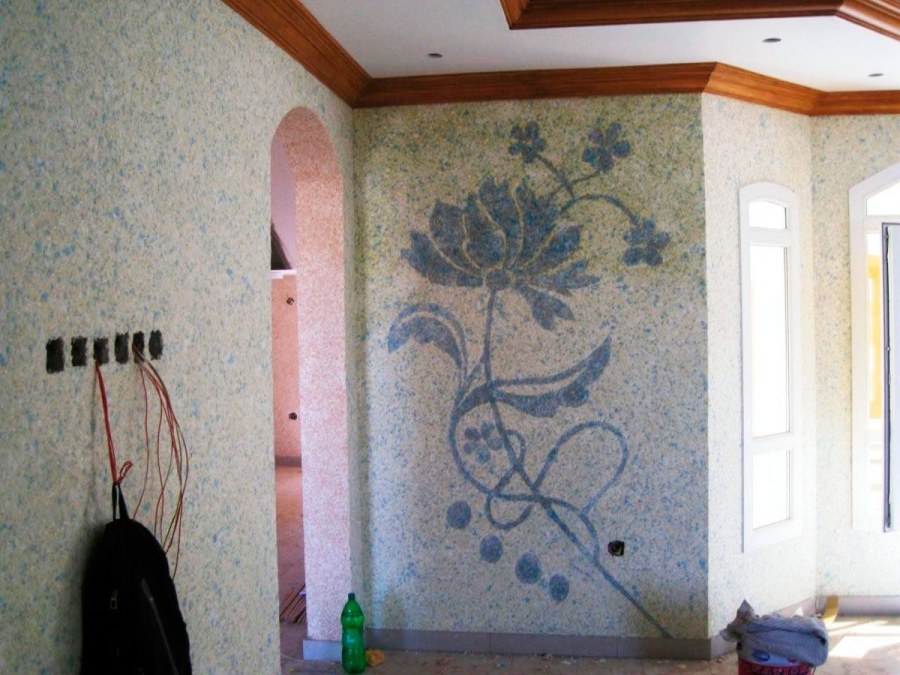 Отделка стен жидкими обоями с рисунком