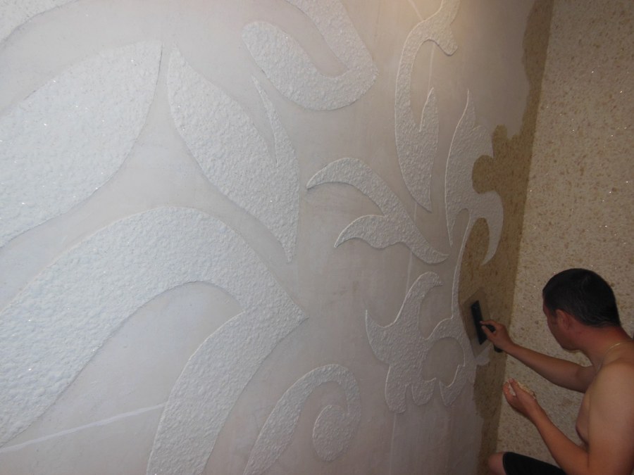 Декор стен жидкими обоями с орнаментом