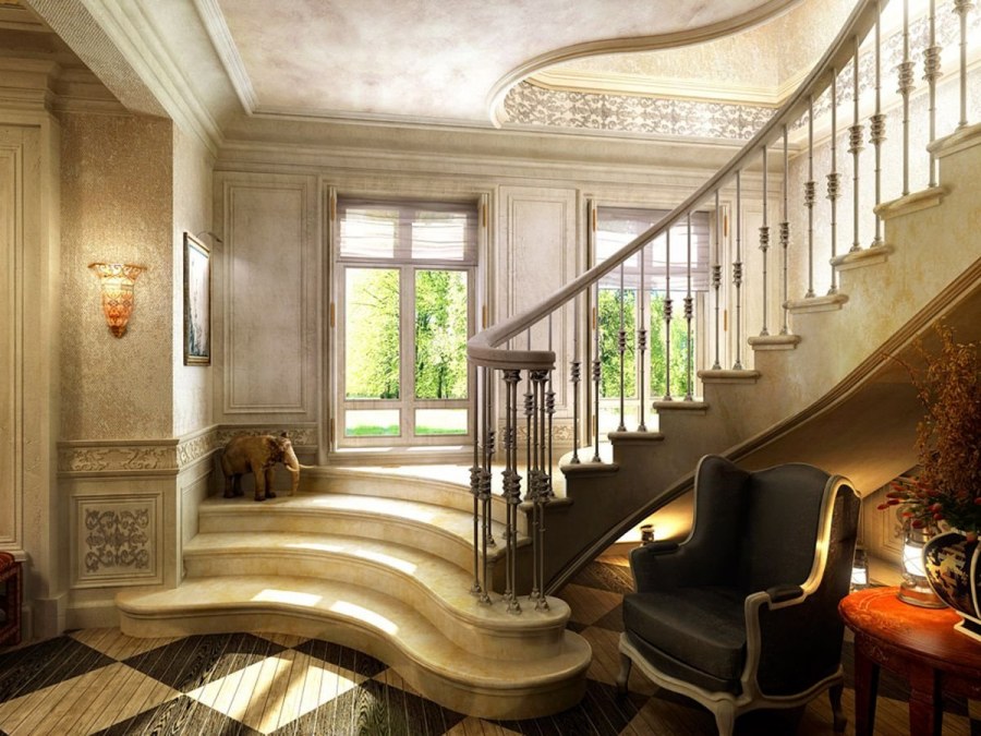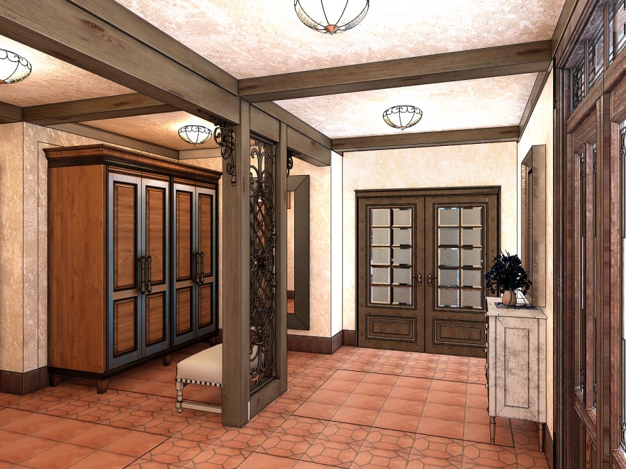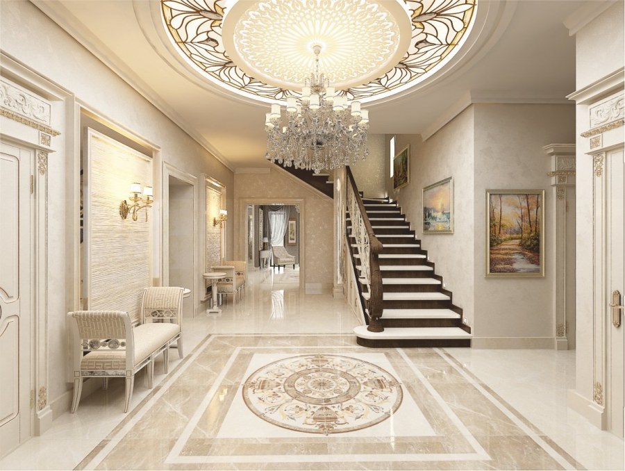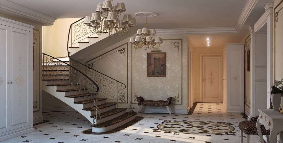 Прихожая и Холл в загородном доме в стиле Неоклассика