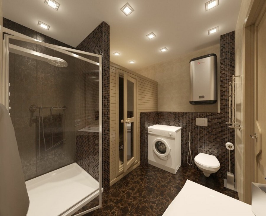 Ванная с душевой кабиной и стиралкой 9 кв м