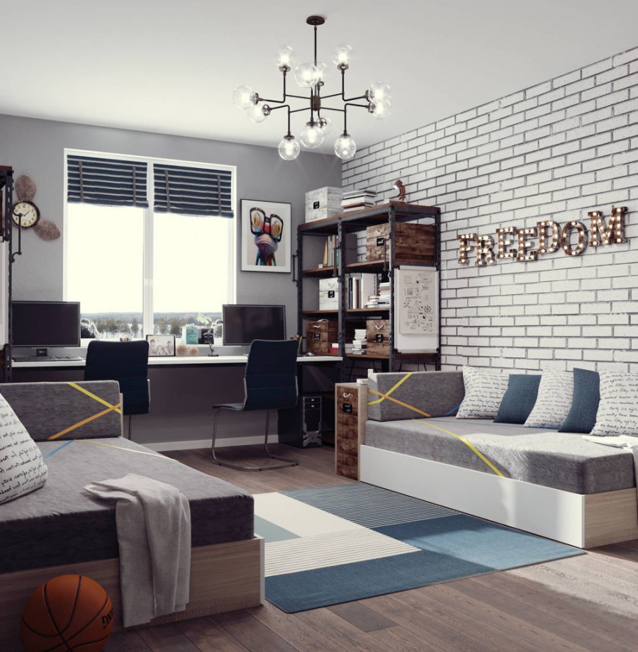 Дизайн комнаты для девушки в стиле лофт (72 фото)