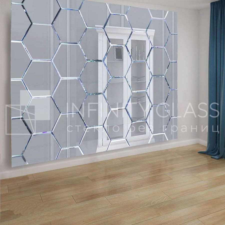 Зеркальная графитовая плитка «сота» с фацетом 10 мм, 200х173 мм