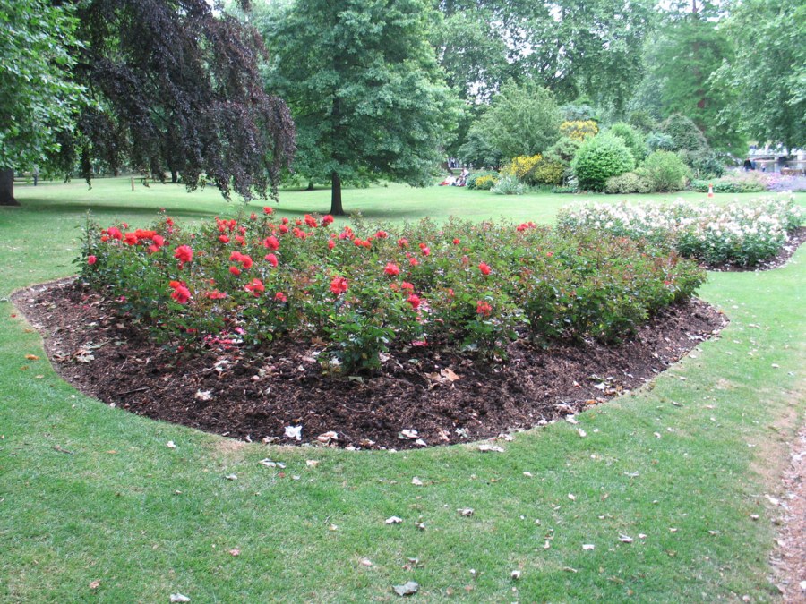 Раскаленные лучи заливают круглую клумбу с цветами (56 фото)
