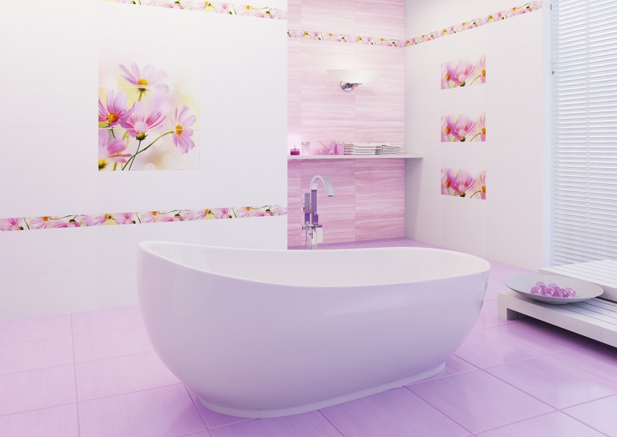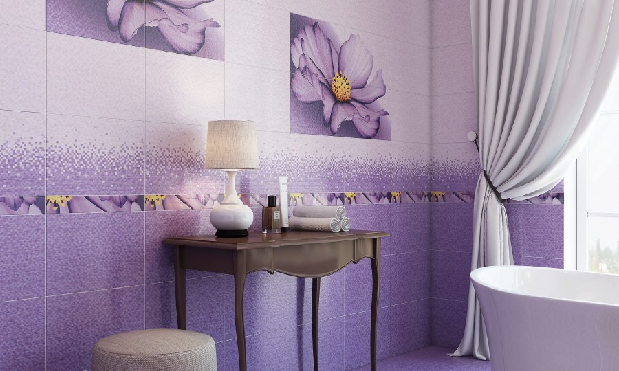 Керамическая плитка лила в интерьере ванной (72 фото)