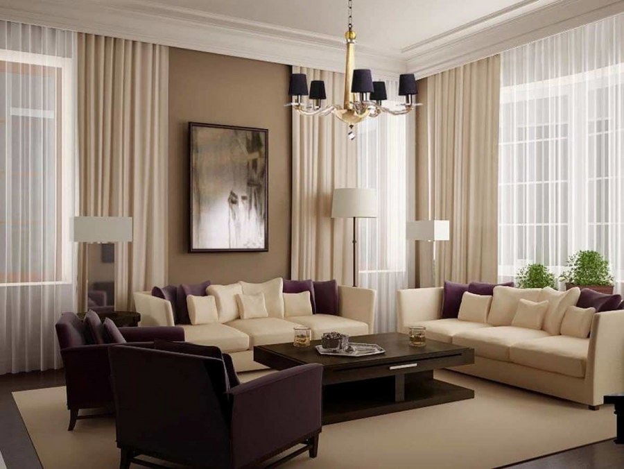 Небольшие гостиные в коричнево-бежевых тонах справа