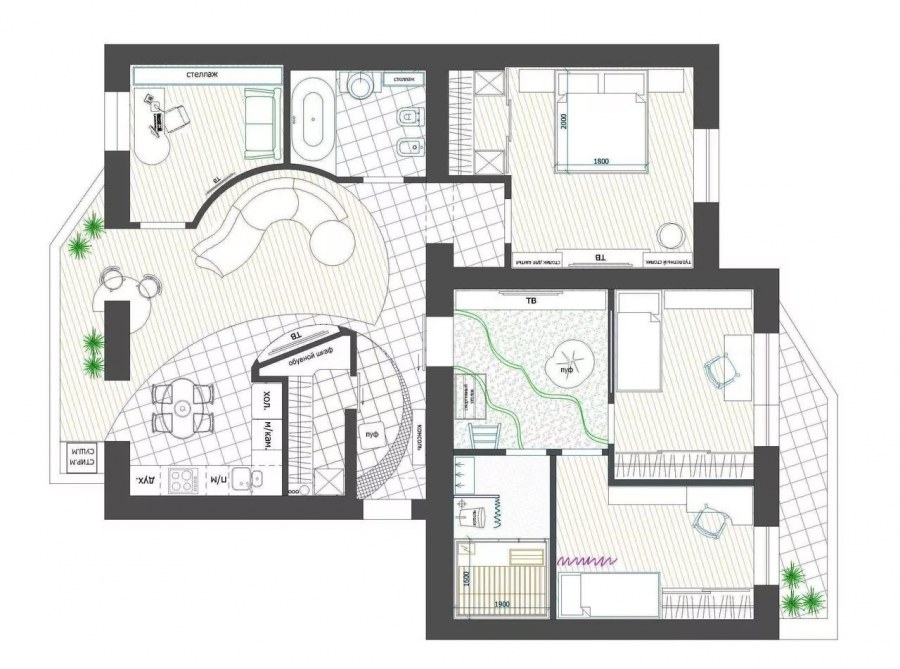 Перепланировка двухкомнатной хрущевки 44 кв.м