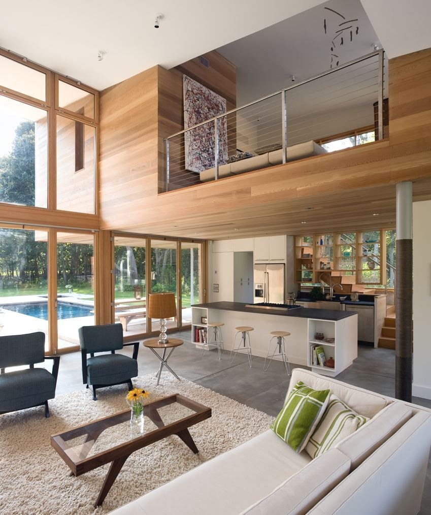 Гостиная с вторым светом в стиле Райта
