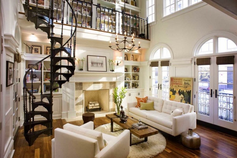 Гостиная с винтовой лестницей