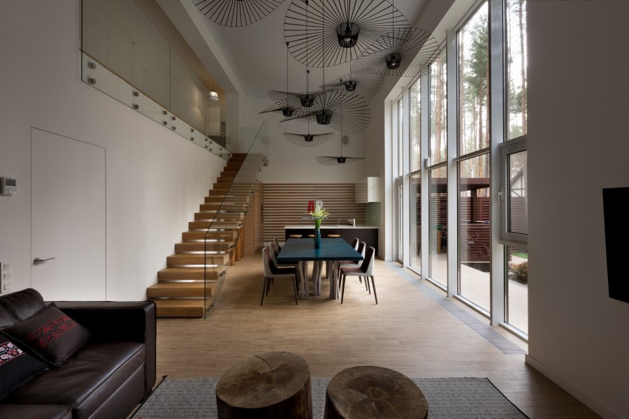 Интерьер с высокими потолками в частном доме