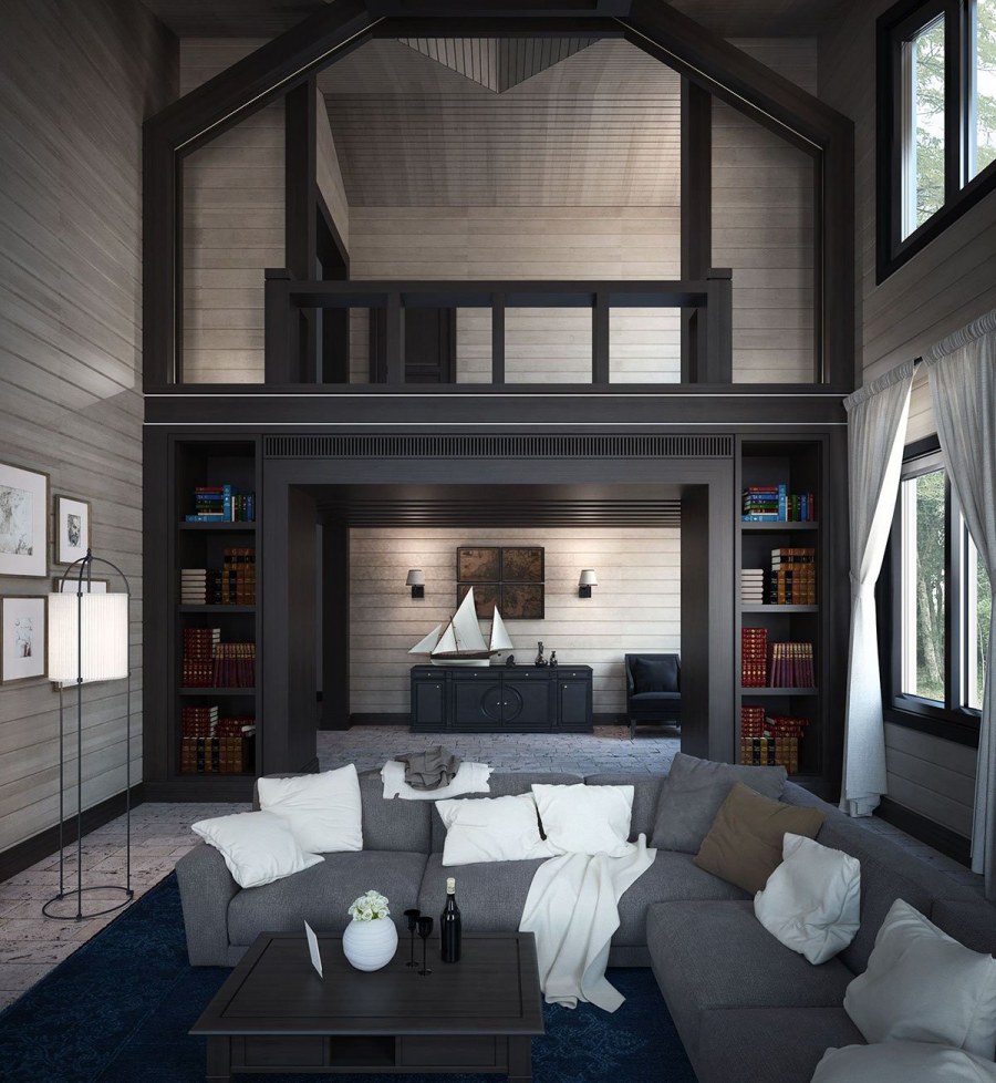 Интерьер домов с высокими потолками