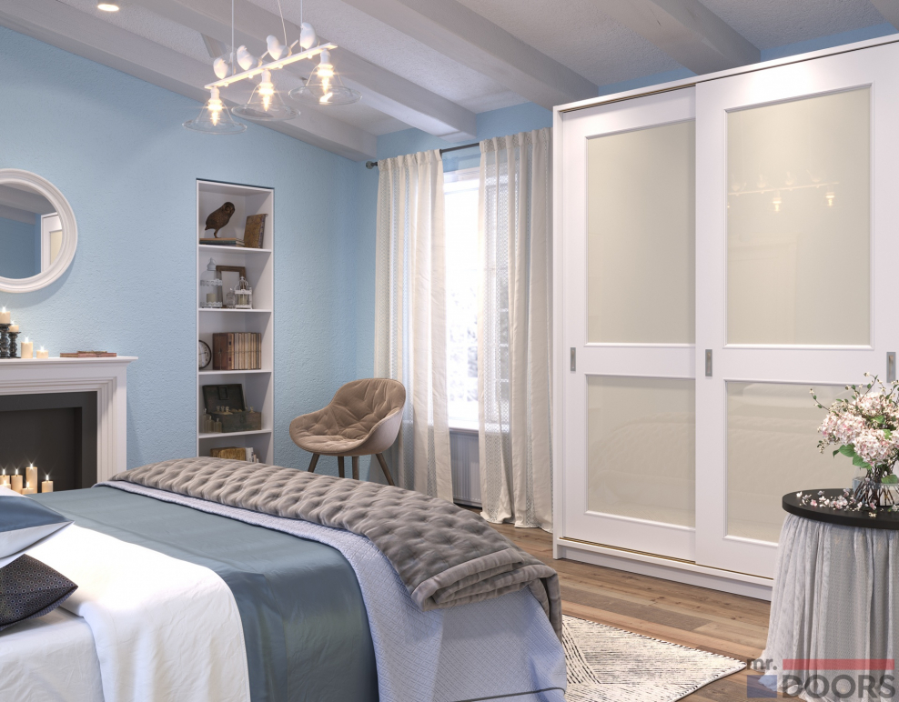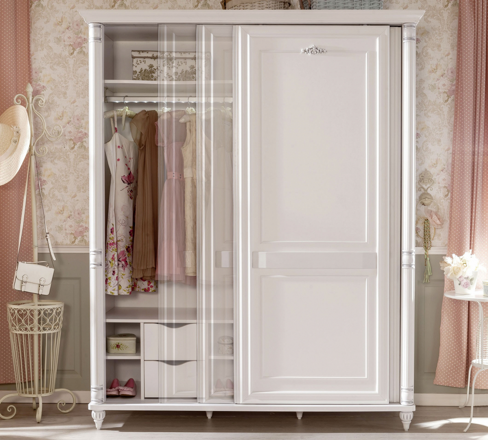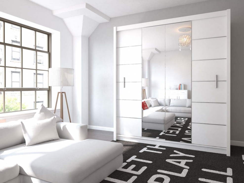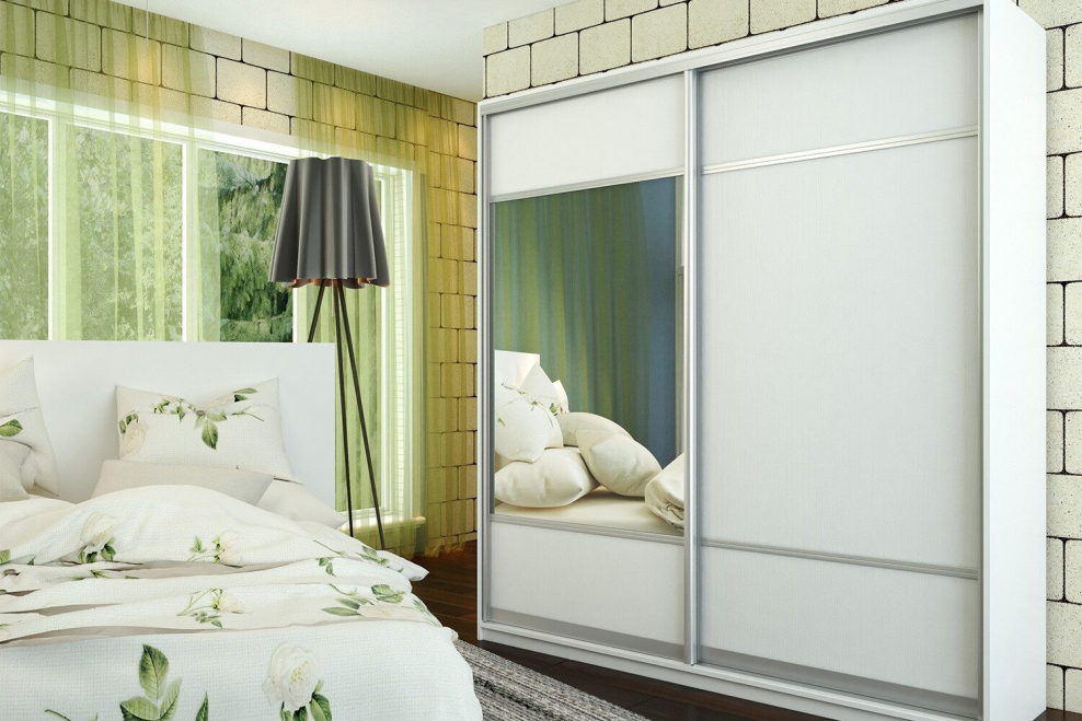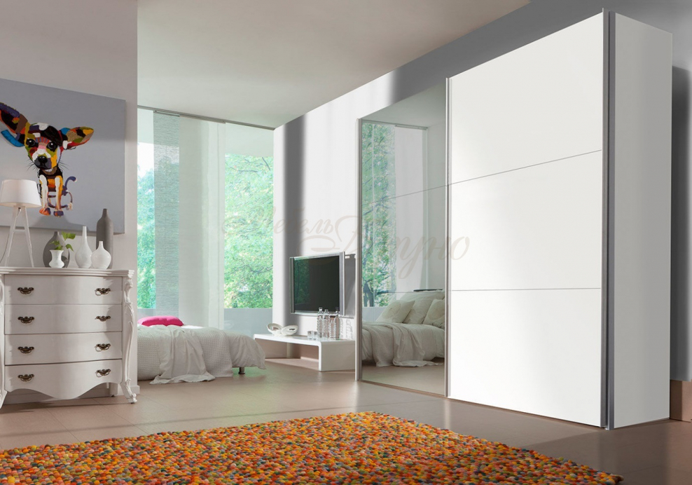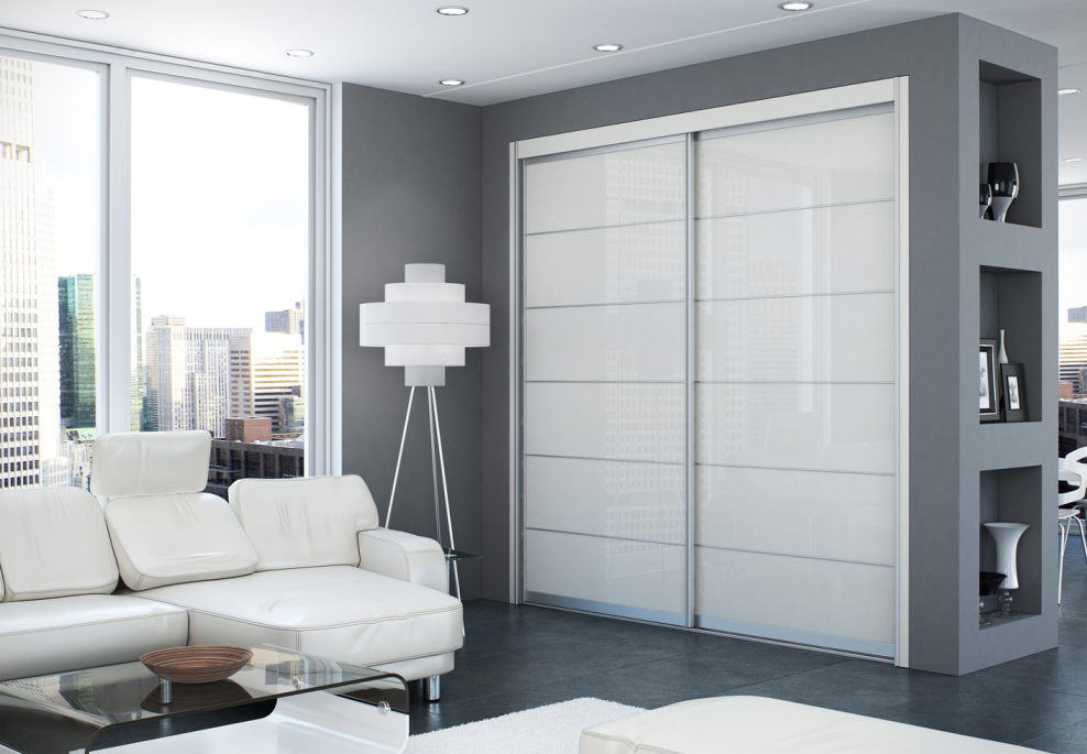 Гардероб, белый, ФЭРВИК белое стекло, 150x66x236 см