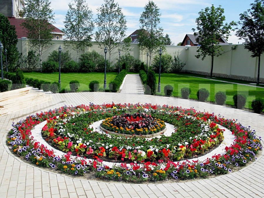 Круглая клумба с цветами