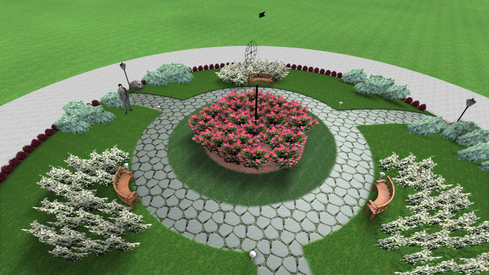 Круглая клумба с дорожками