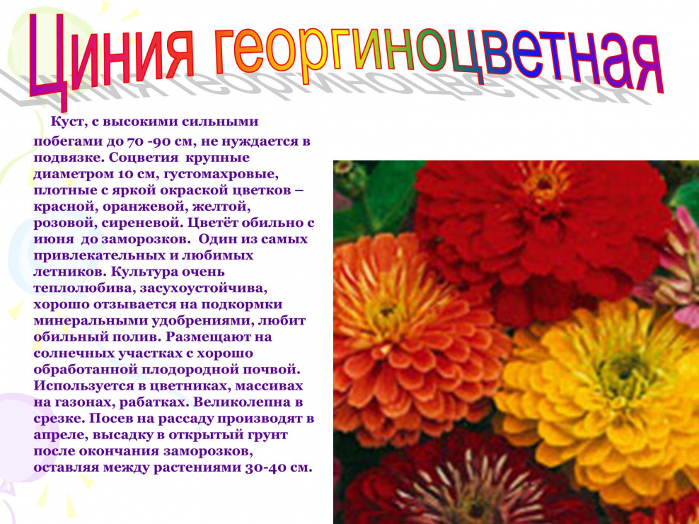 Циния цветы описание