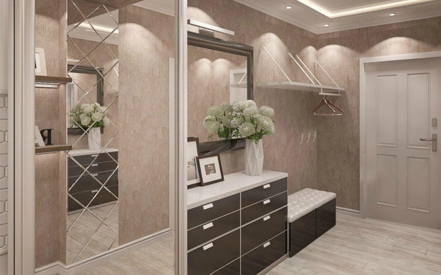 Коридор дизайн интерьера в квартире в светлых тонах (71 фото)