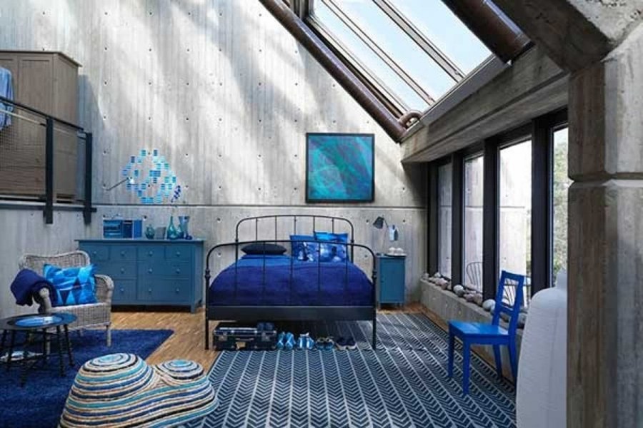 Бетон голубой цвет в интерьере (65 фото)
