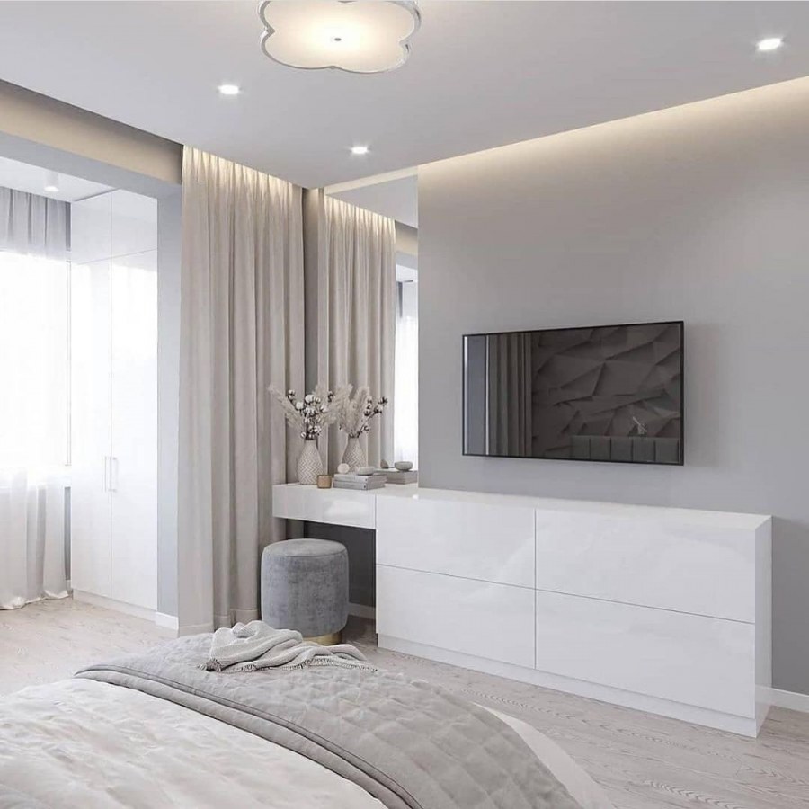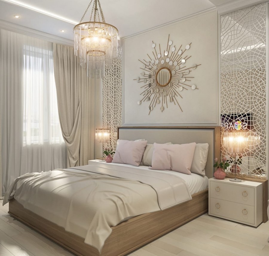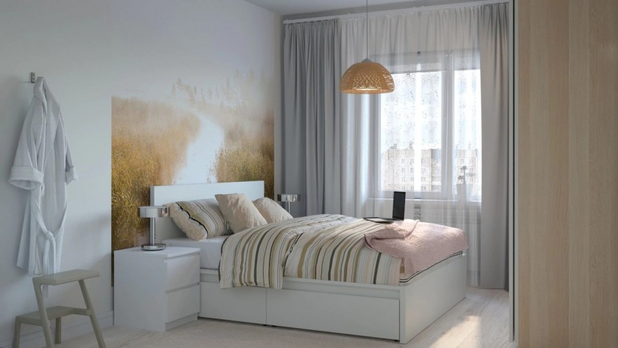 Интерьер спальни в светлых тонах со светлой мебелью в квартире (72 фото)