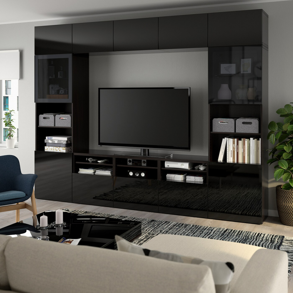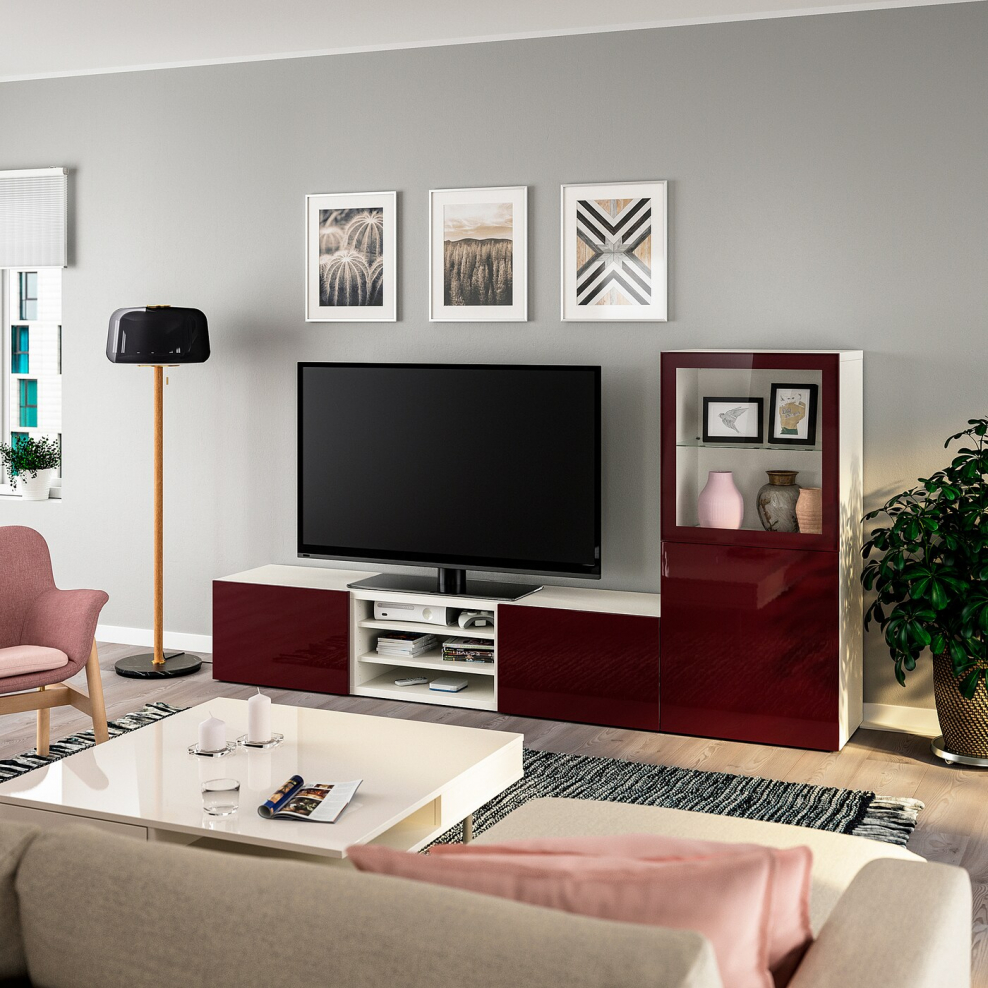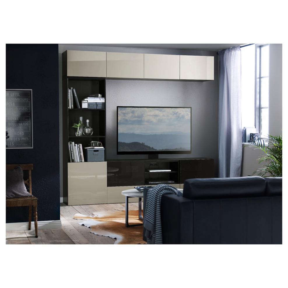 БЕСТО шкаф для ТВ, комбин/стеклян дверцы