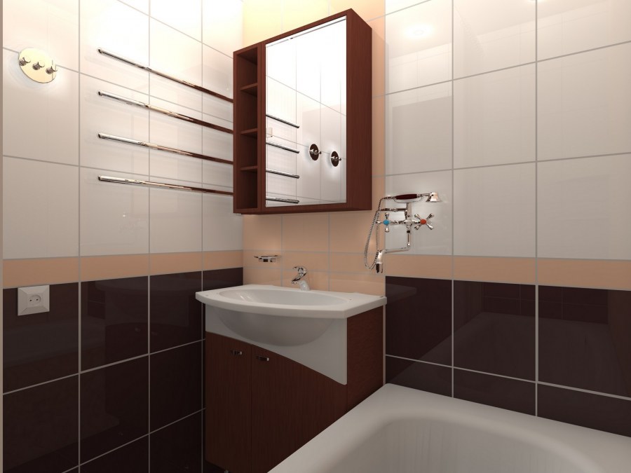 Ванная в хрущевке в коричневых тонах
