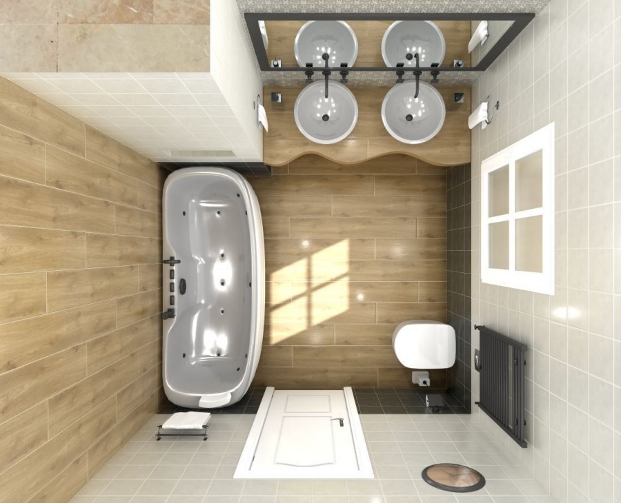 Планировка в ванной совмещенной с туалетом в деревянном