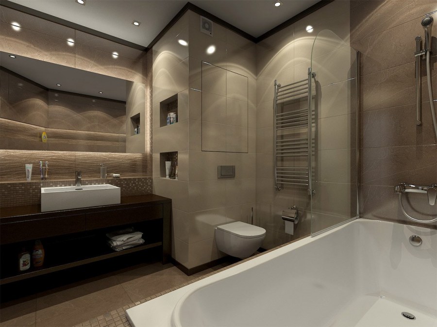 Ванная в современном стиле в теплых тонах