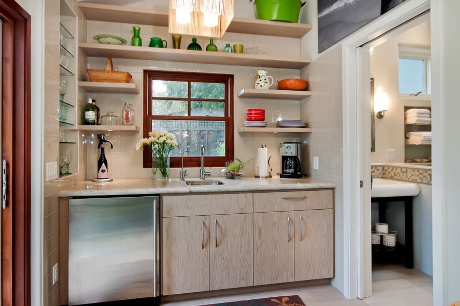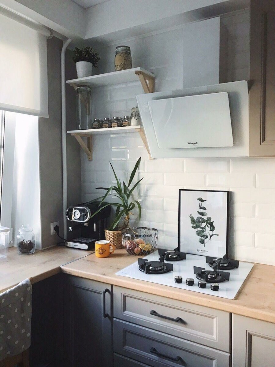 Маленькая кухня с открытыми полками