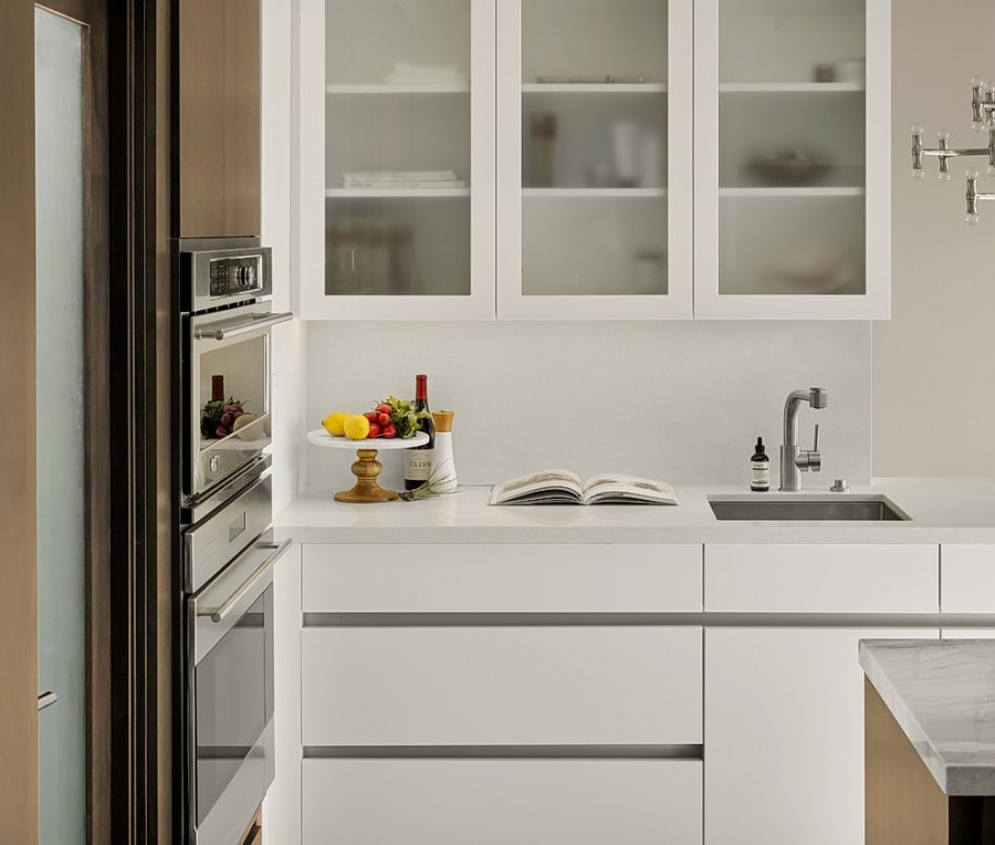 Белая кухня с антресолями
