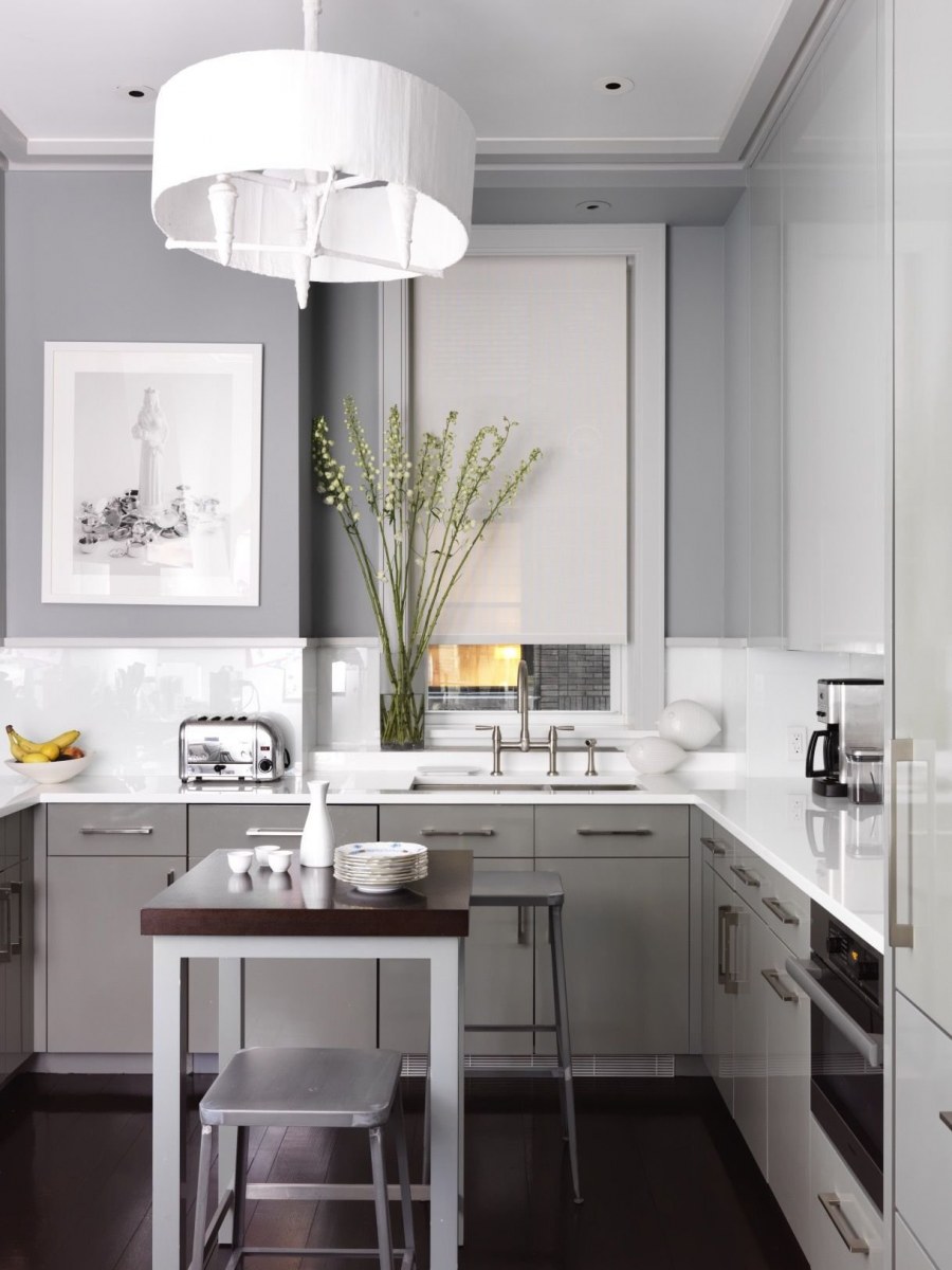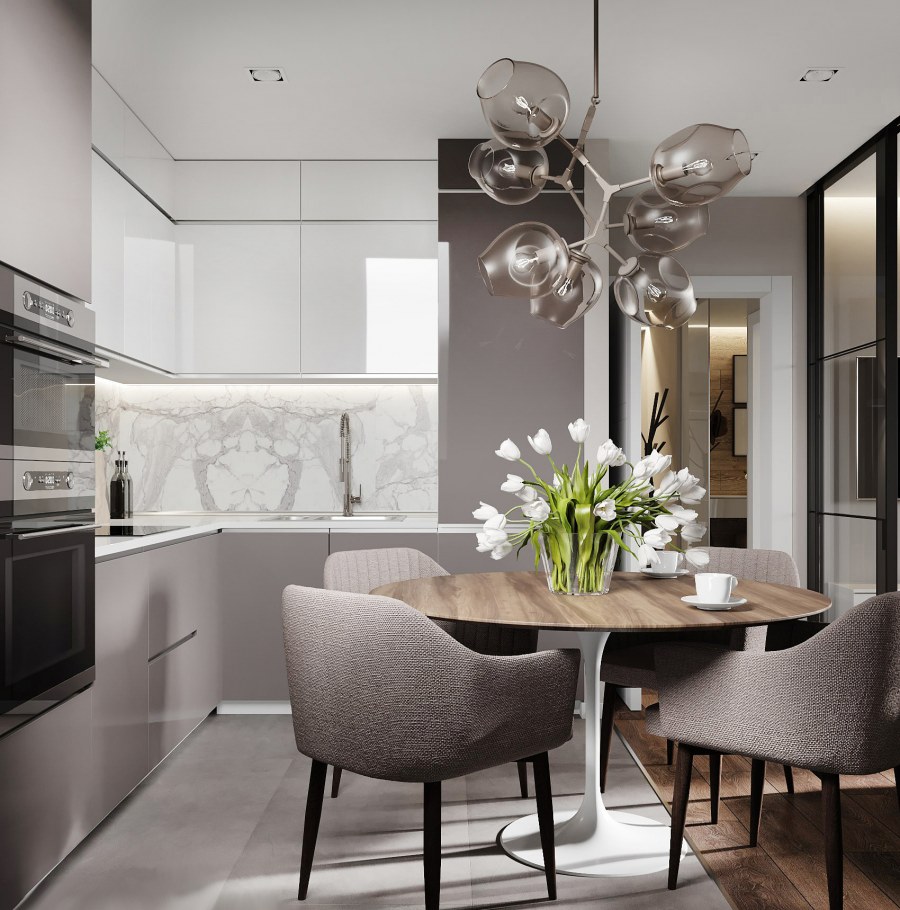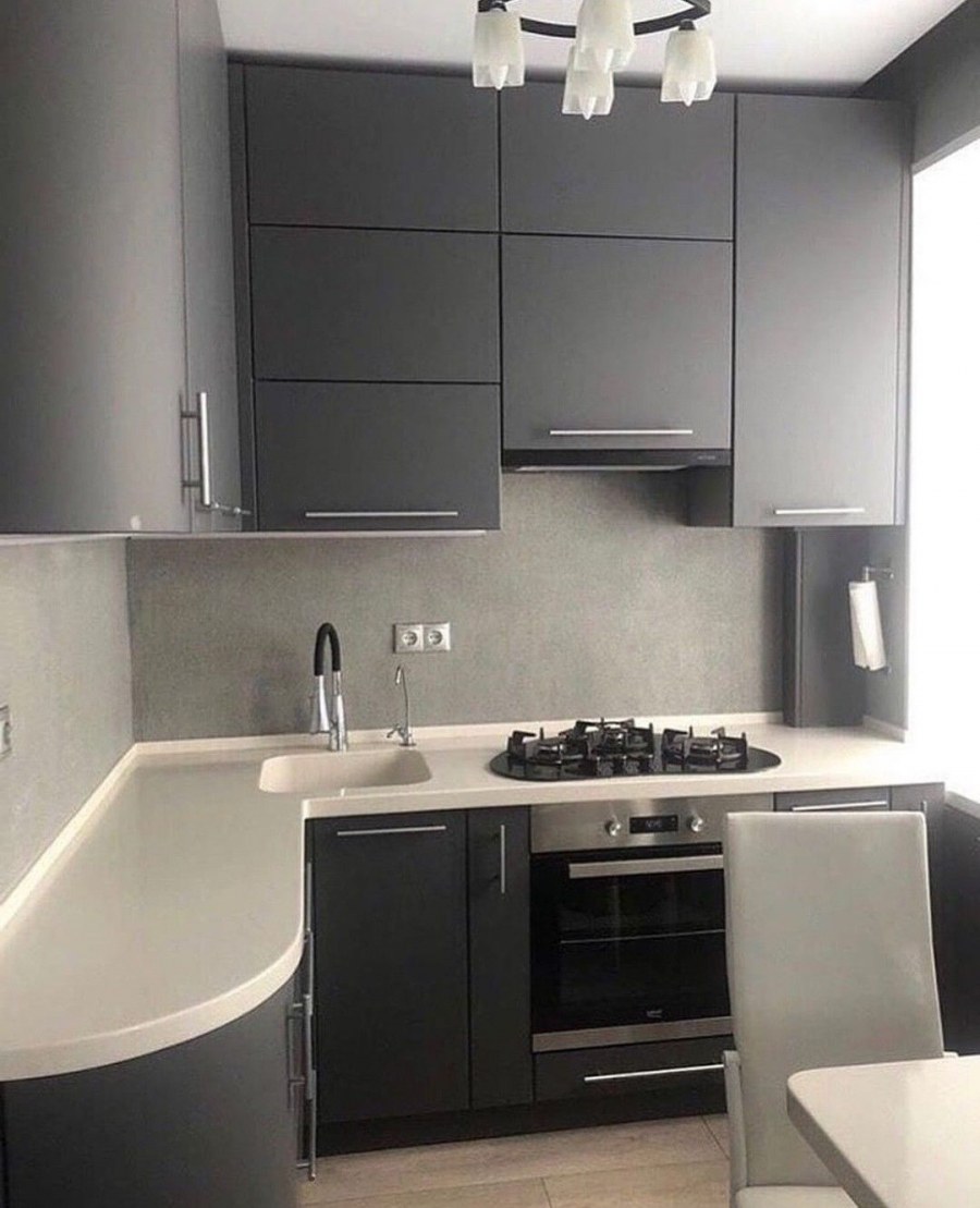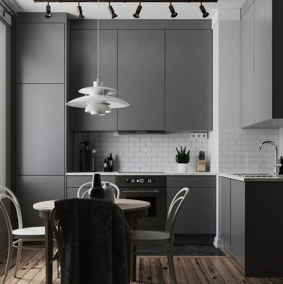 Дизайн маленькой кухни в серых тонах (65 фото)
