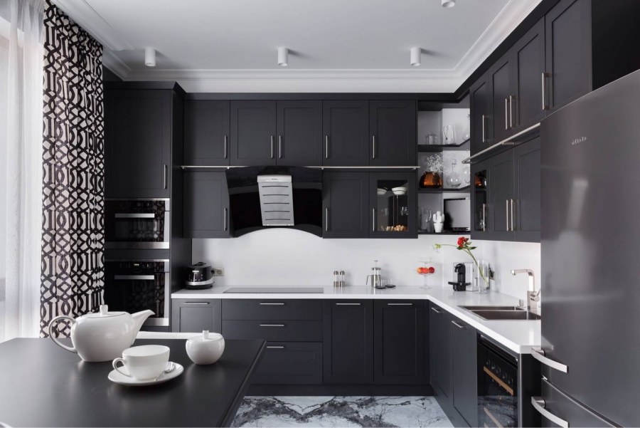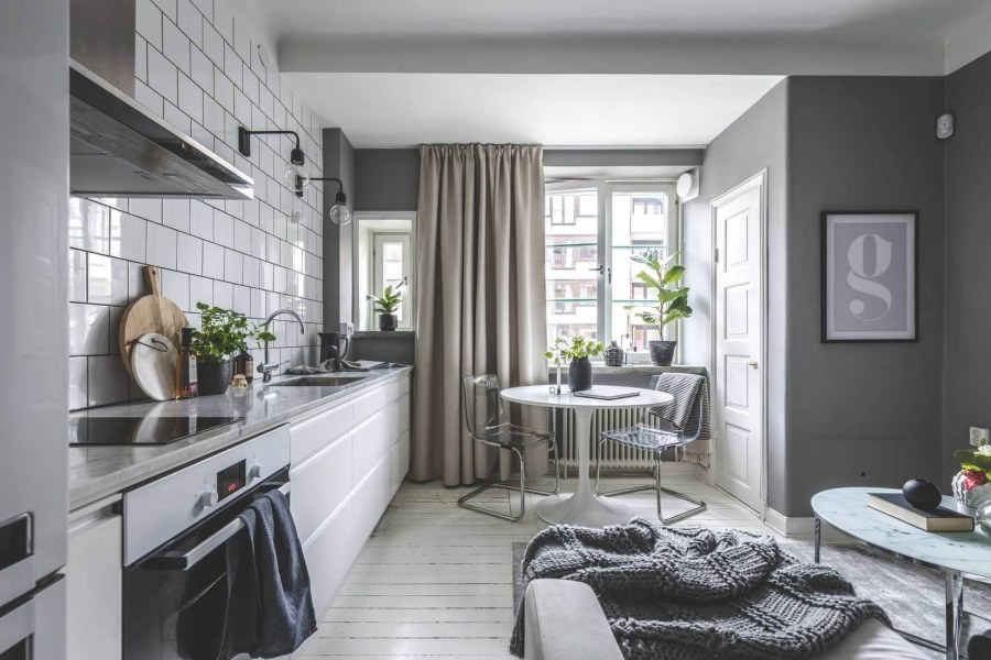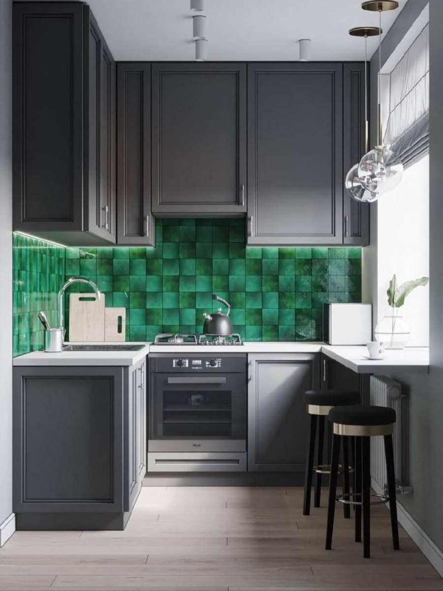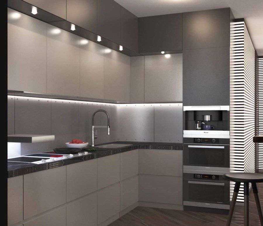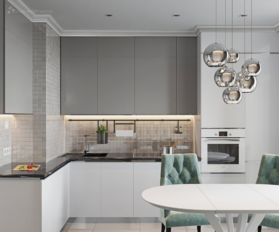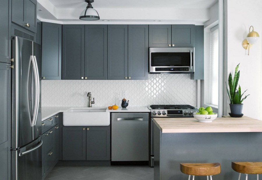 Дизайн маленькой кухни в серых тонах (65 фото)