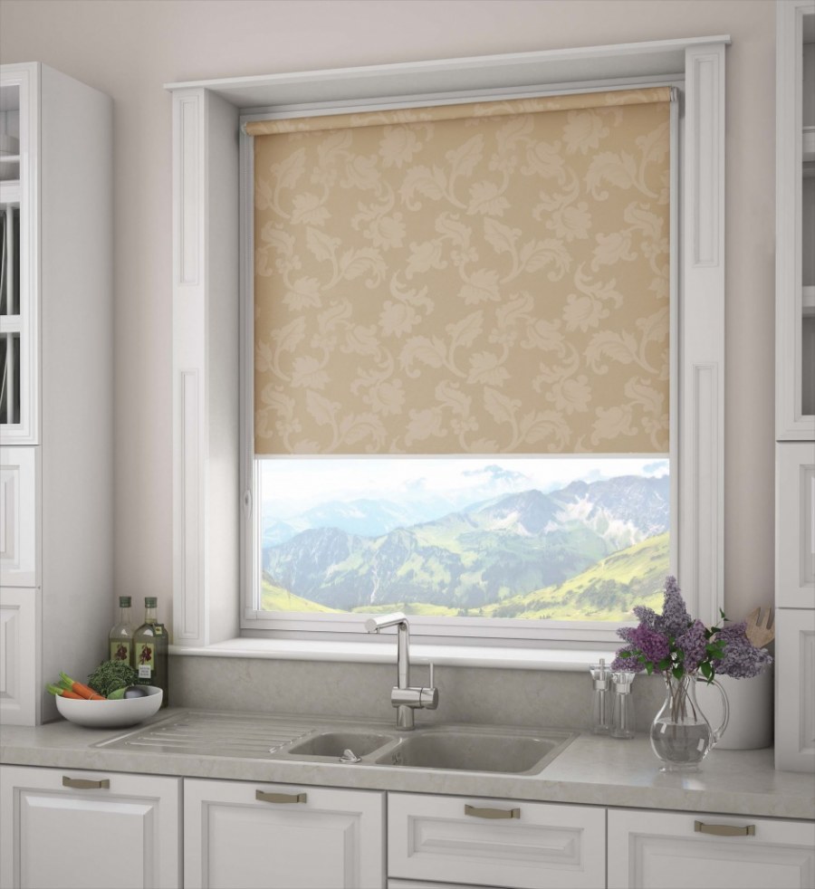 Рулонная штора ролло блэкаут "одуванчик", зеленый, бежевый (AX-200028-gr)