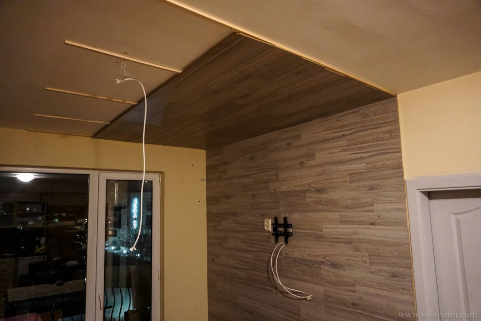Монтаж ламината на потолок