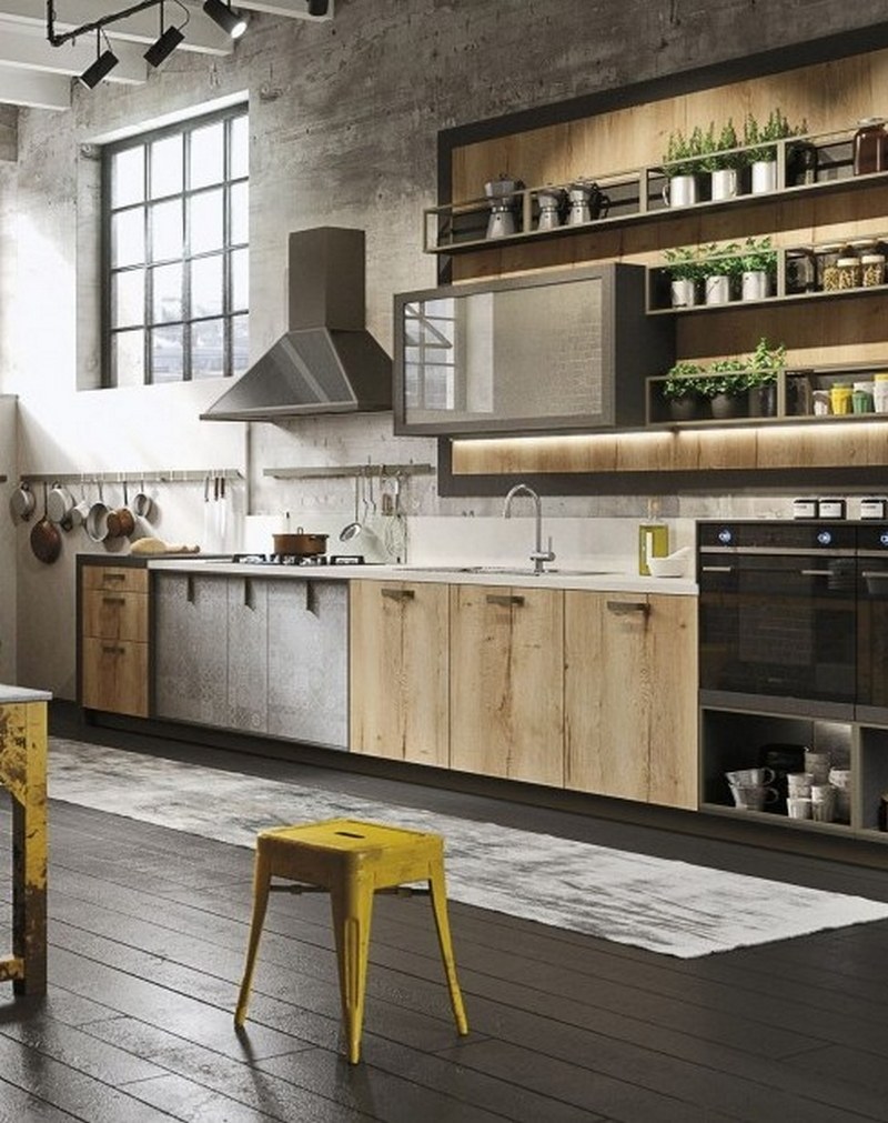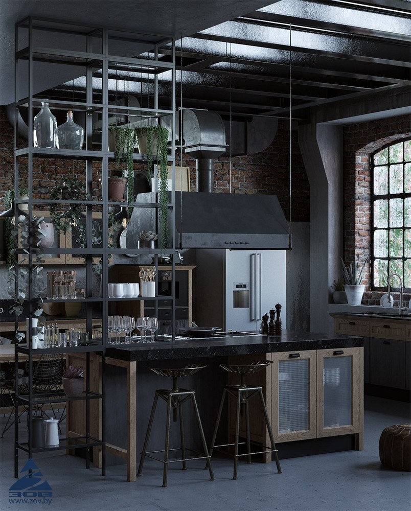 Кухни из металла и дерева в стиле лофт (72 фото)