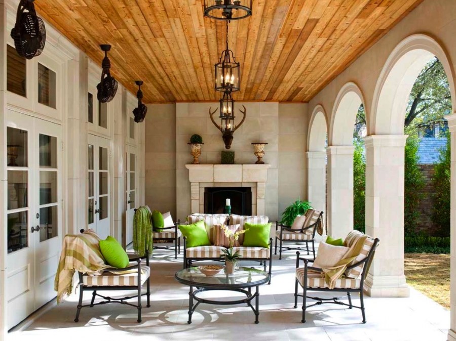 Колонны круглые в интерьере открытой веранды (67 фото)