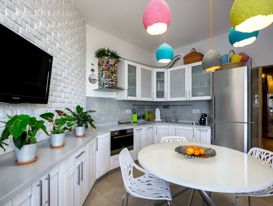 Белая кухня с яркими акцентами