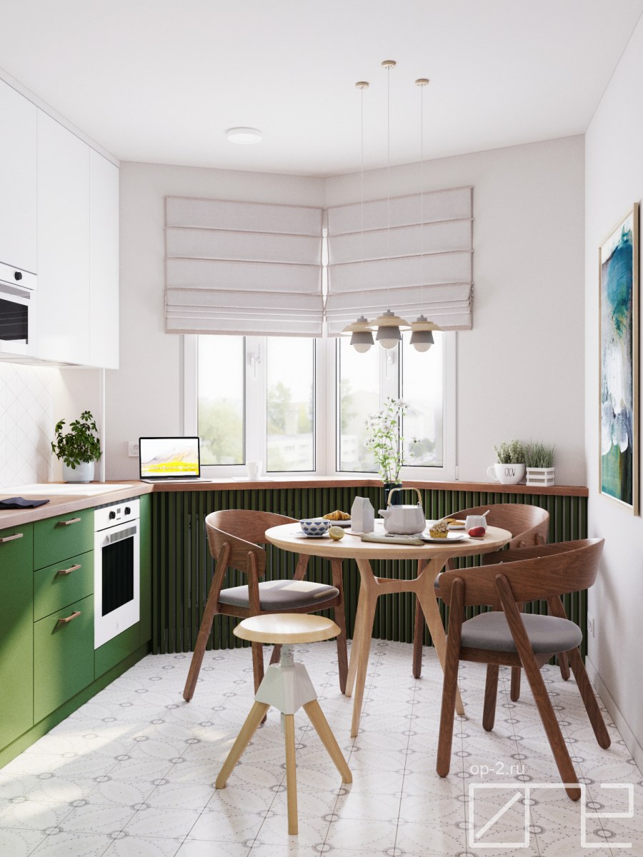 Интерьер кухни 4на3метра зеленая