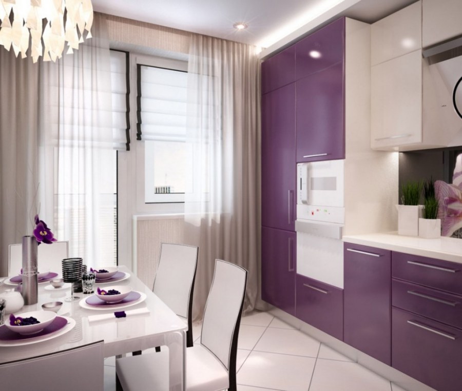 Интерьер кухни в фиолетовых тонах