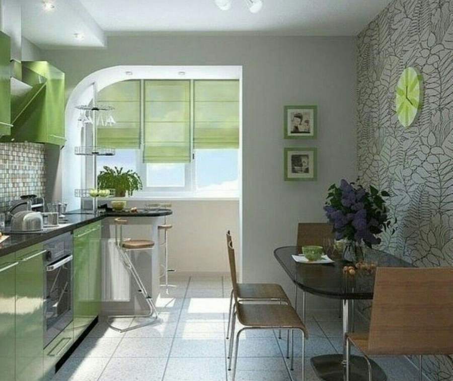 Кухня совмешеной с балконом