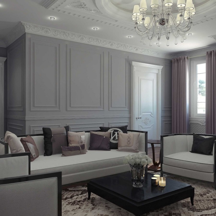 Линкруста в интерьере гостиной в стиле Неоклассика