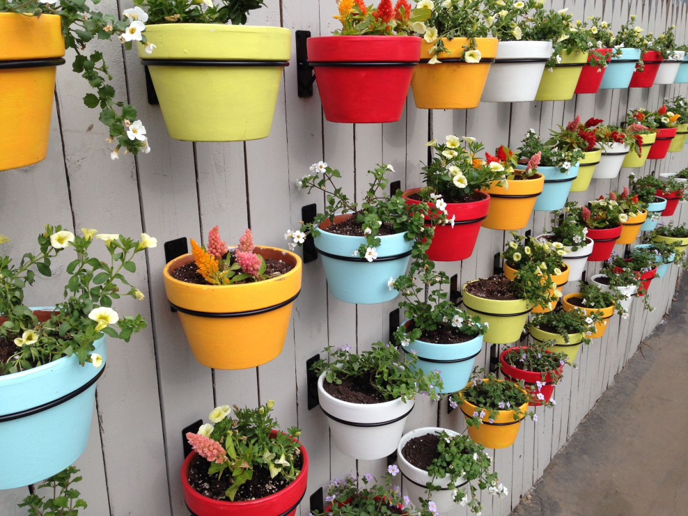Цветы на стене в горшках