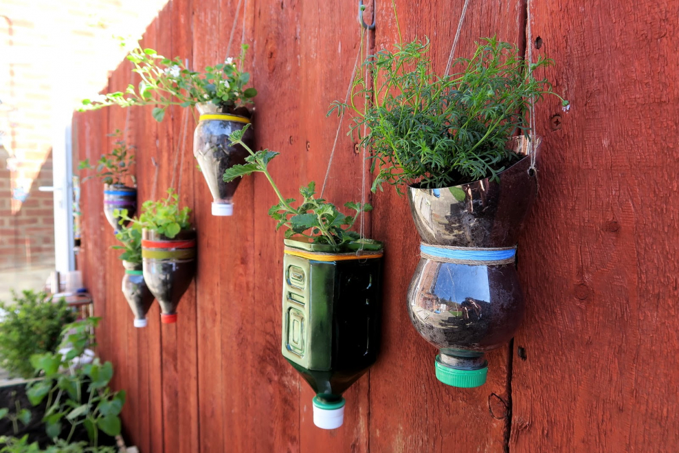 Подвесные кашпо из подручных материалов