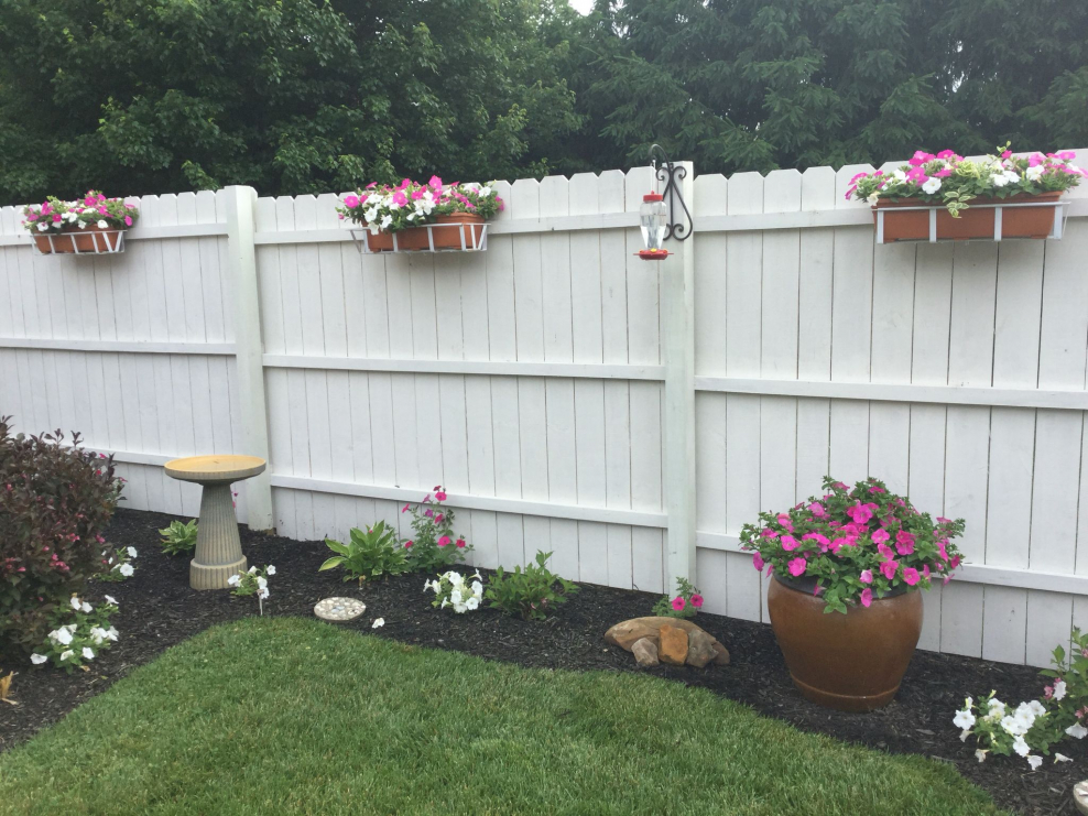 Цветы на заборе в горшках примеры оформления (49 фото)