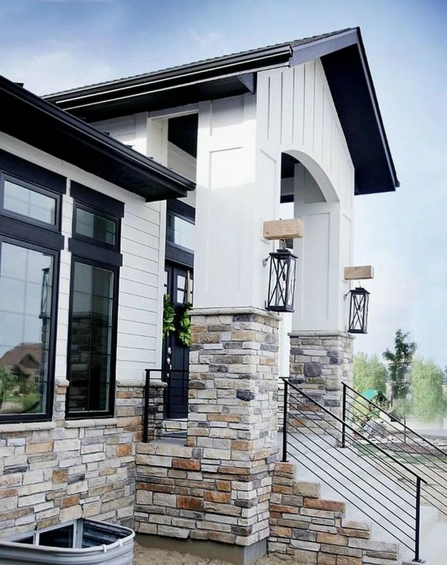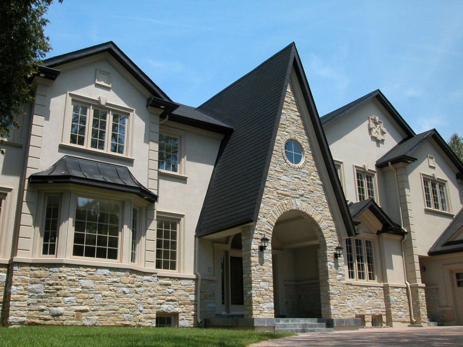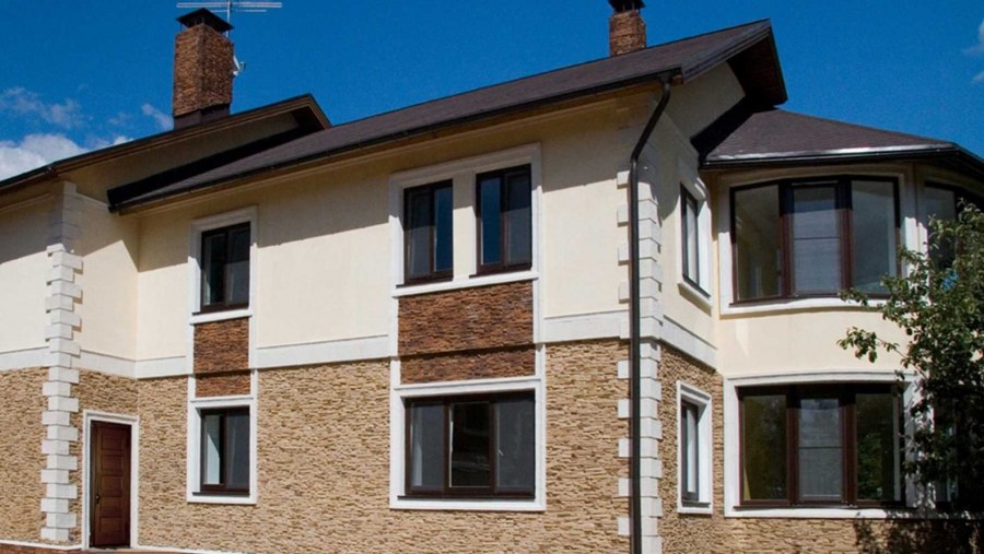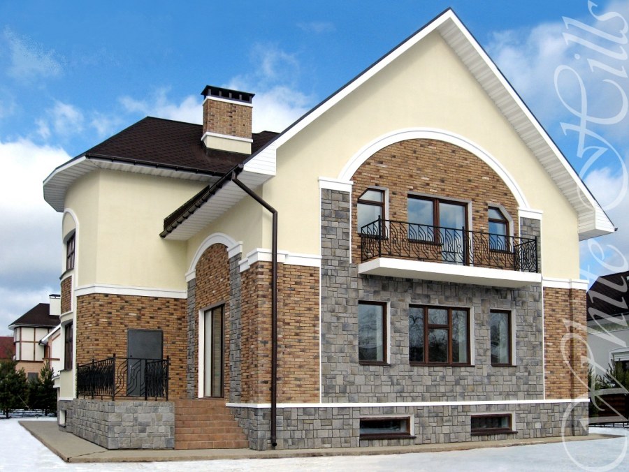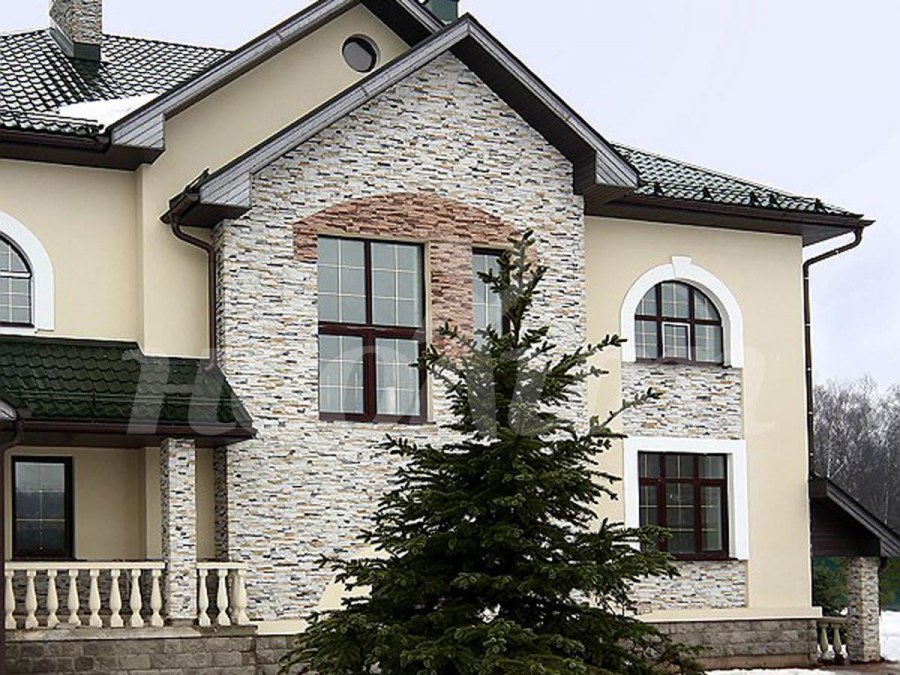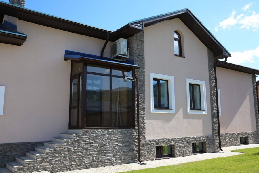 Отделка фасада камнем и штукатуркой