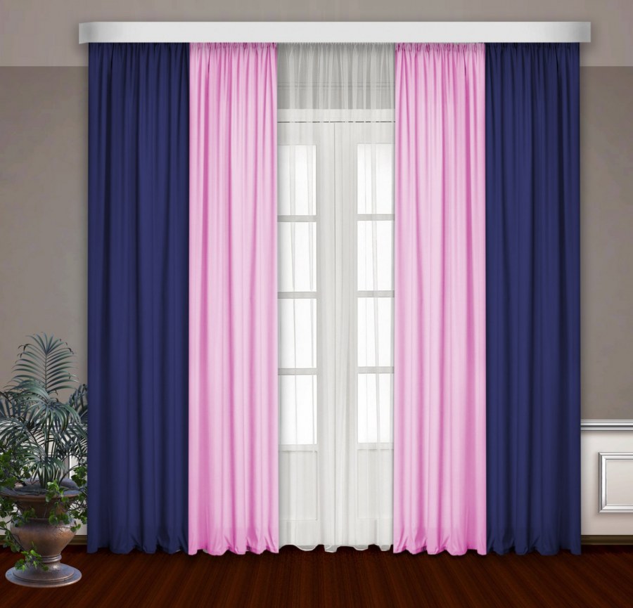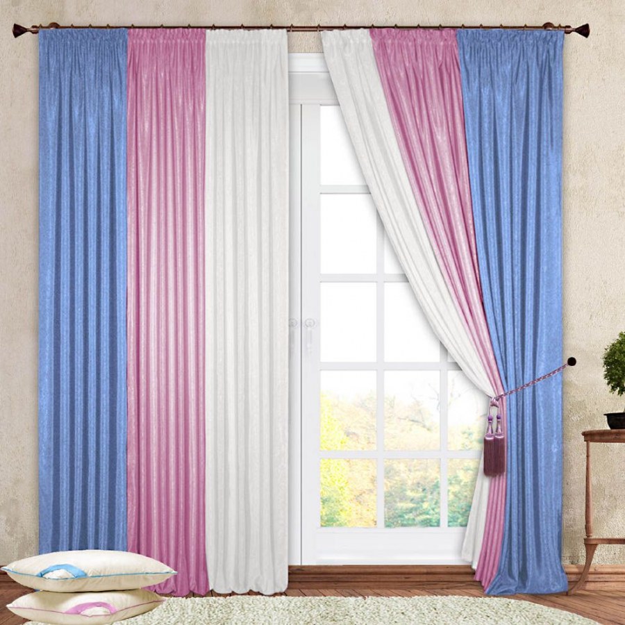 Шторы голубые с розовым