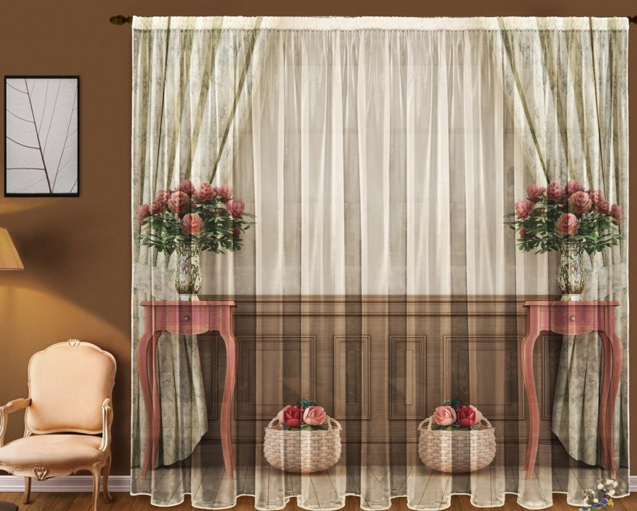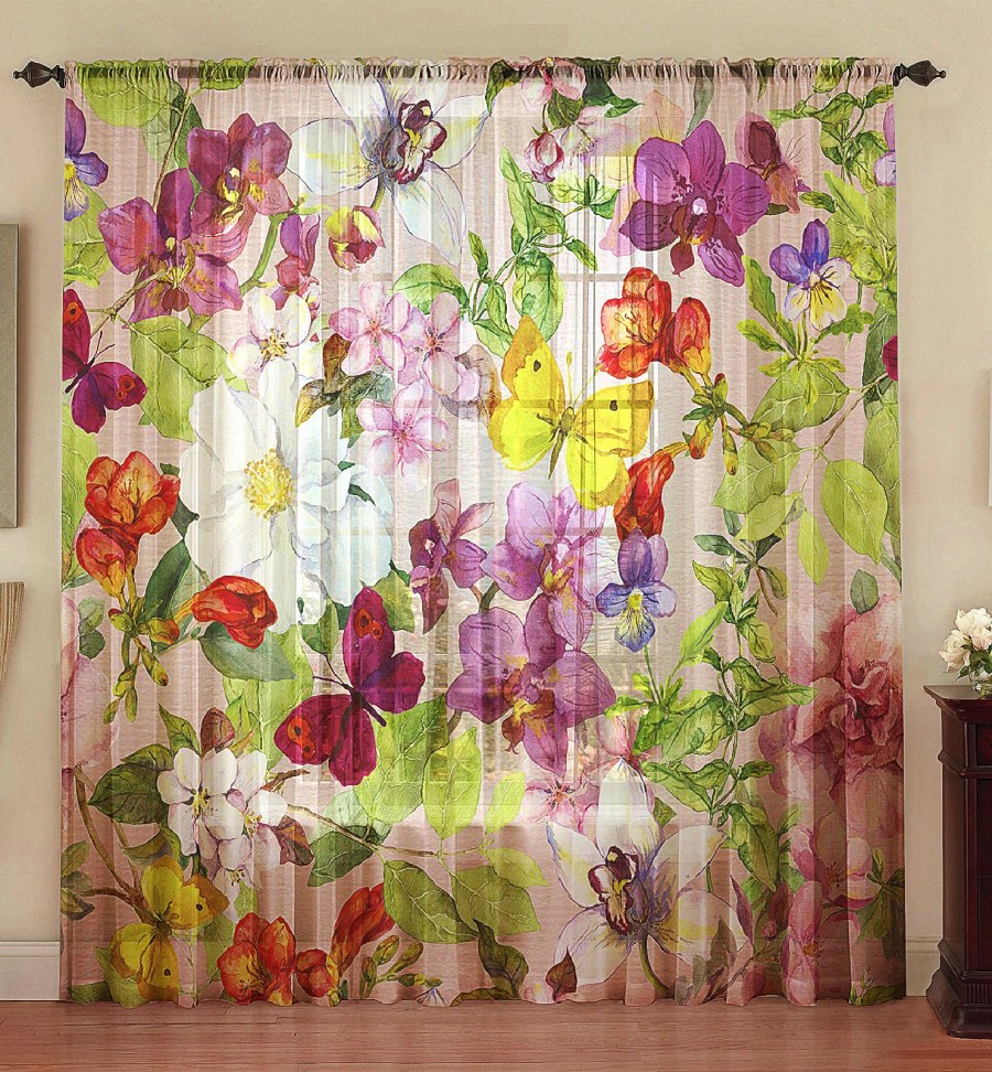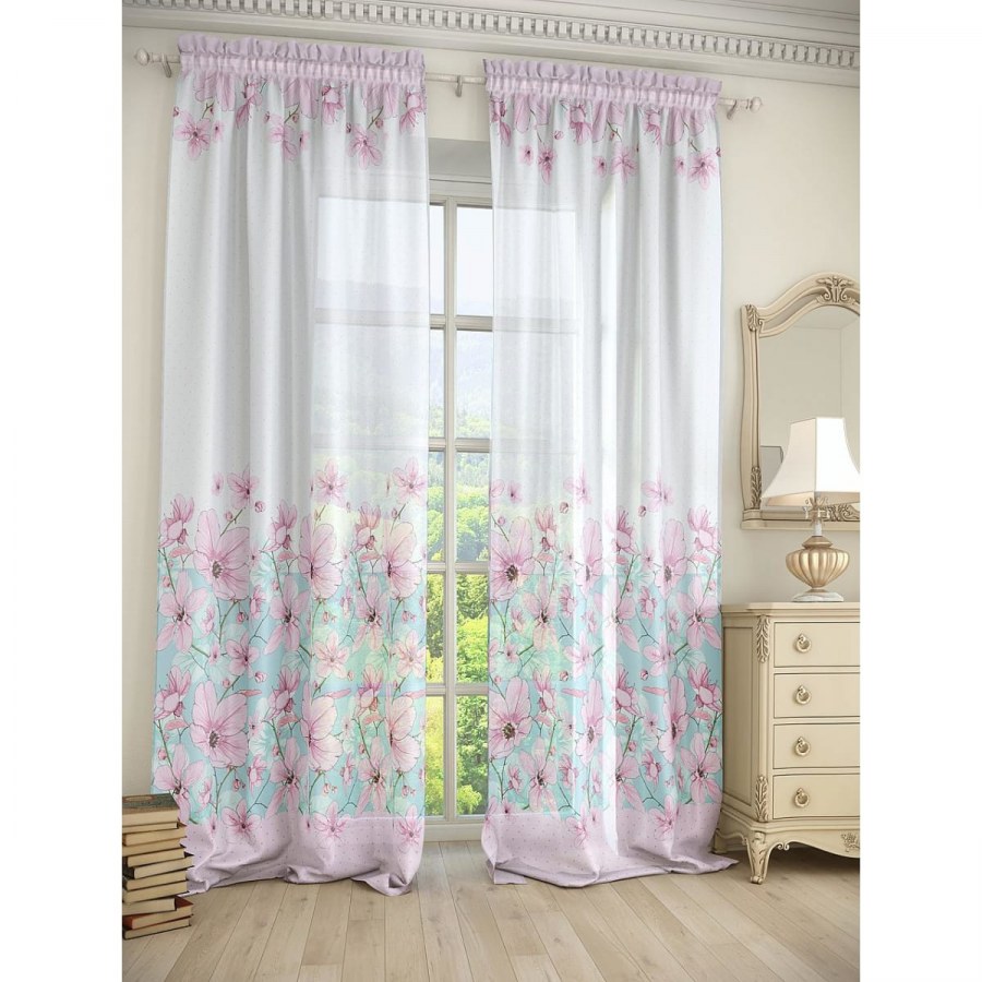 Тюль с цветочным принтом