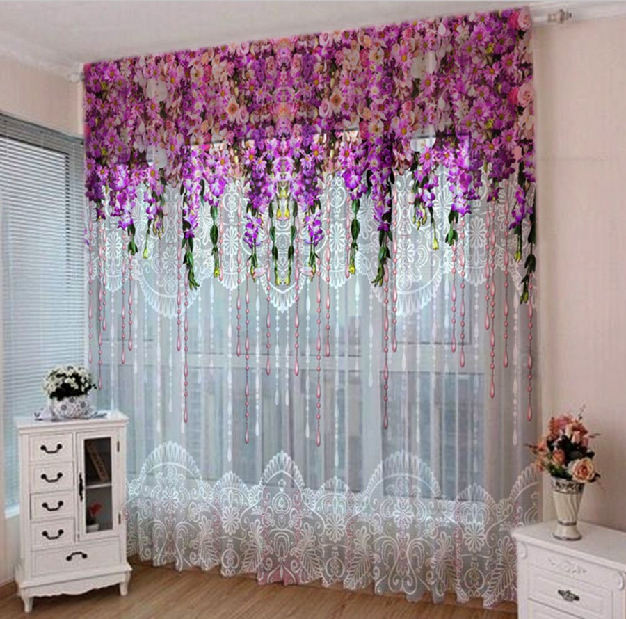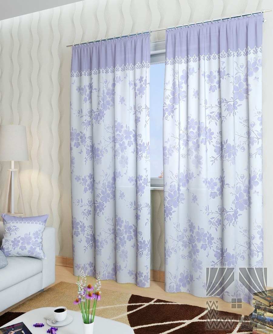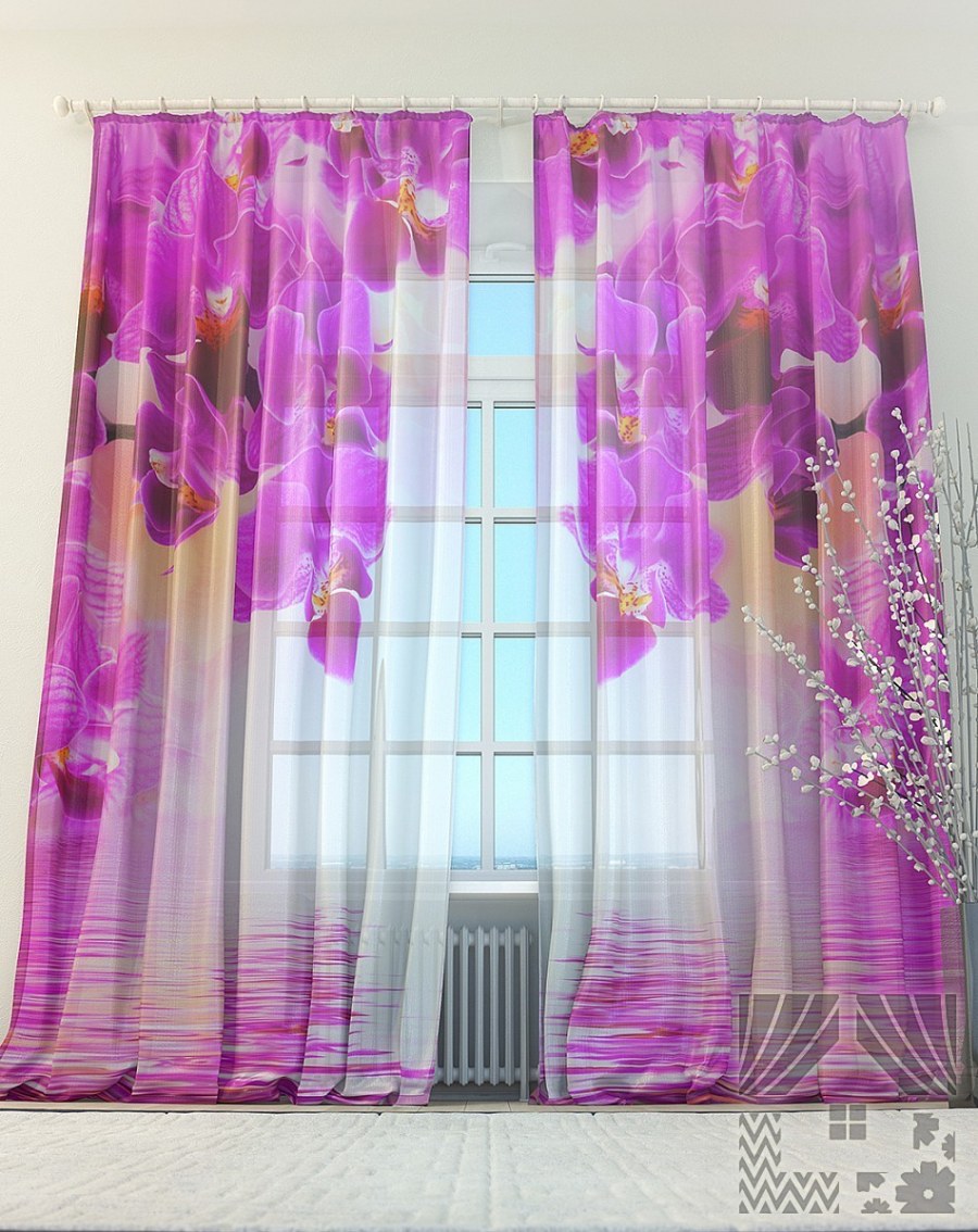 Тюль с фиолетовыми цветами