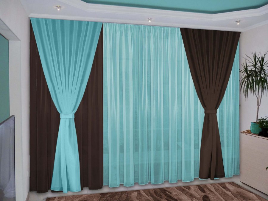 Комплект штор №038 темно-коричневый, бирюзовый